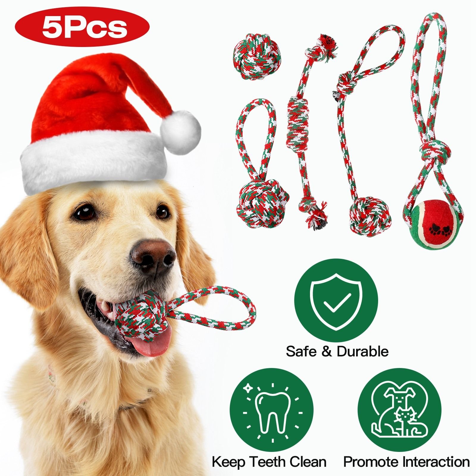 Home > 5Pcs Christmas Dog Rope Chew Toys Dog Interactive Toys Set for Puppy Small Medium Aggressive Chewers Dogs Training Teething Playing