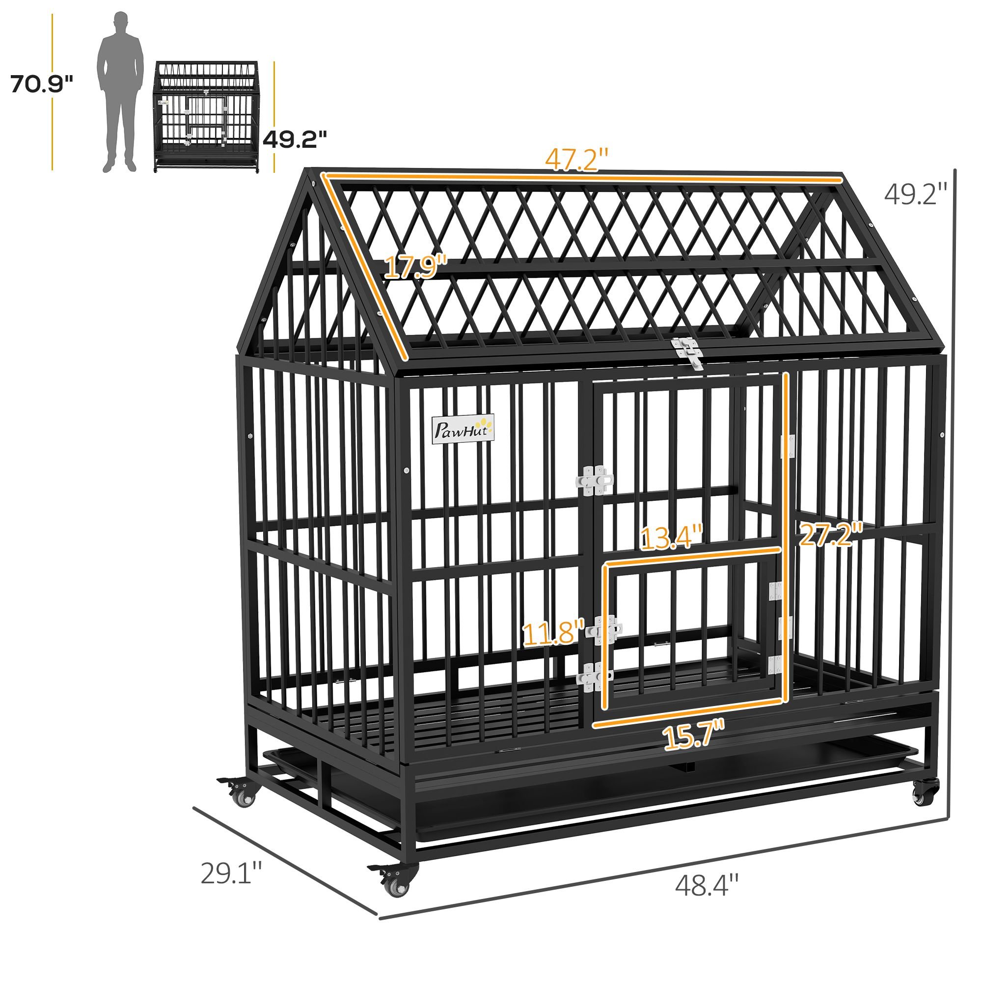 PawHut 48" Heavy Duty Dog Crate with 4 Lockable Wheels, Double Doors, and Removable Tray, for XL and L Dogs PawHut 48" Heavy Duty Dog Crate with 4 Lockable Wheels, Double Doors, and Removable Tray, for XL and L Dogs PawHut 48" Heavy Duty Dog Crate with 4 Lockable Wheels, Double Doors, and Removable Tray, for XL and L Dogs